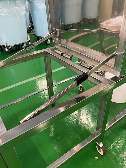 また、不安定な上下移動が無くなり、安定した平行移動となることで落下の危険性が無くなりました。 - 作業効率化:4人で行っていた作業が3名(計算上は2.3人)で行えるようになりました。作業時間も20分程度短くなりました。